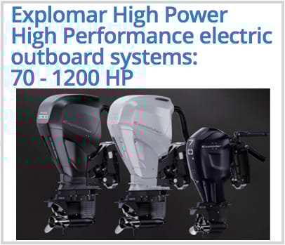 Norwegian company Evoy was one of the first in the world to develop all electric boat motors with power ratings of 100 kilowatts and beyond. They now have lines of high powered outboards and inboard systems like the Breeze 120+ HP, Storm 330+ HP and Hurricane 400+ HP that are on the transoms and in the hulls of dozens of vessels from leading boat yards around the world.